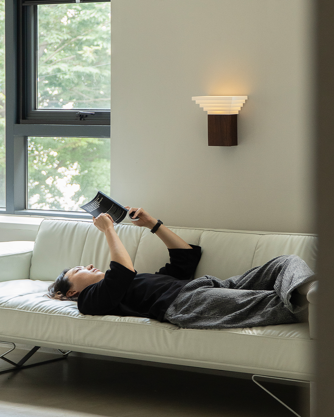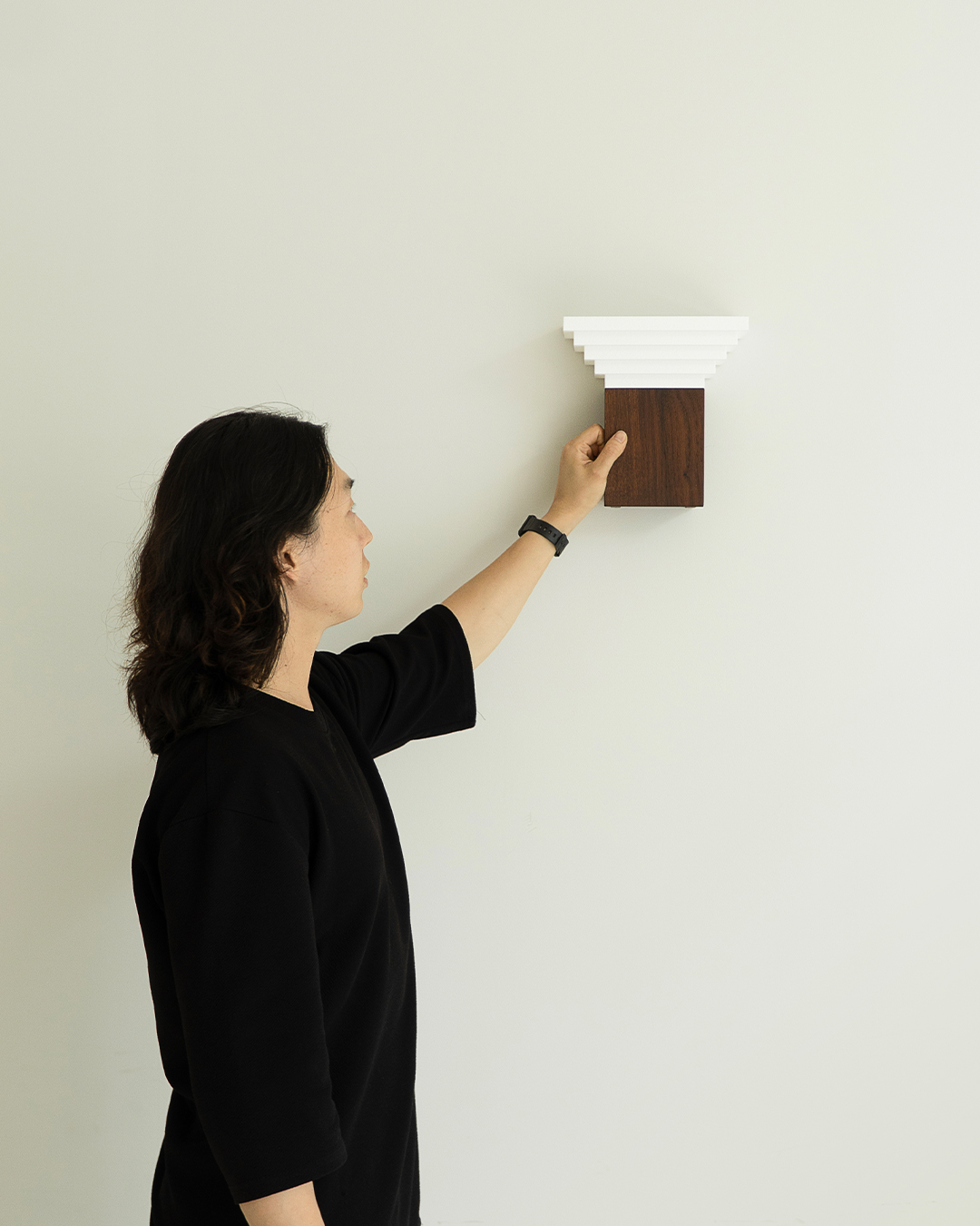 나무의 자연스러운 질감과 프린팅 레이어의 정제된 결이 어우러지며, 하나의 구조 안에서 서로 다른 시간과 감각이 공존합니다.