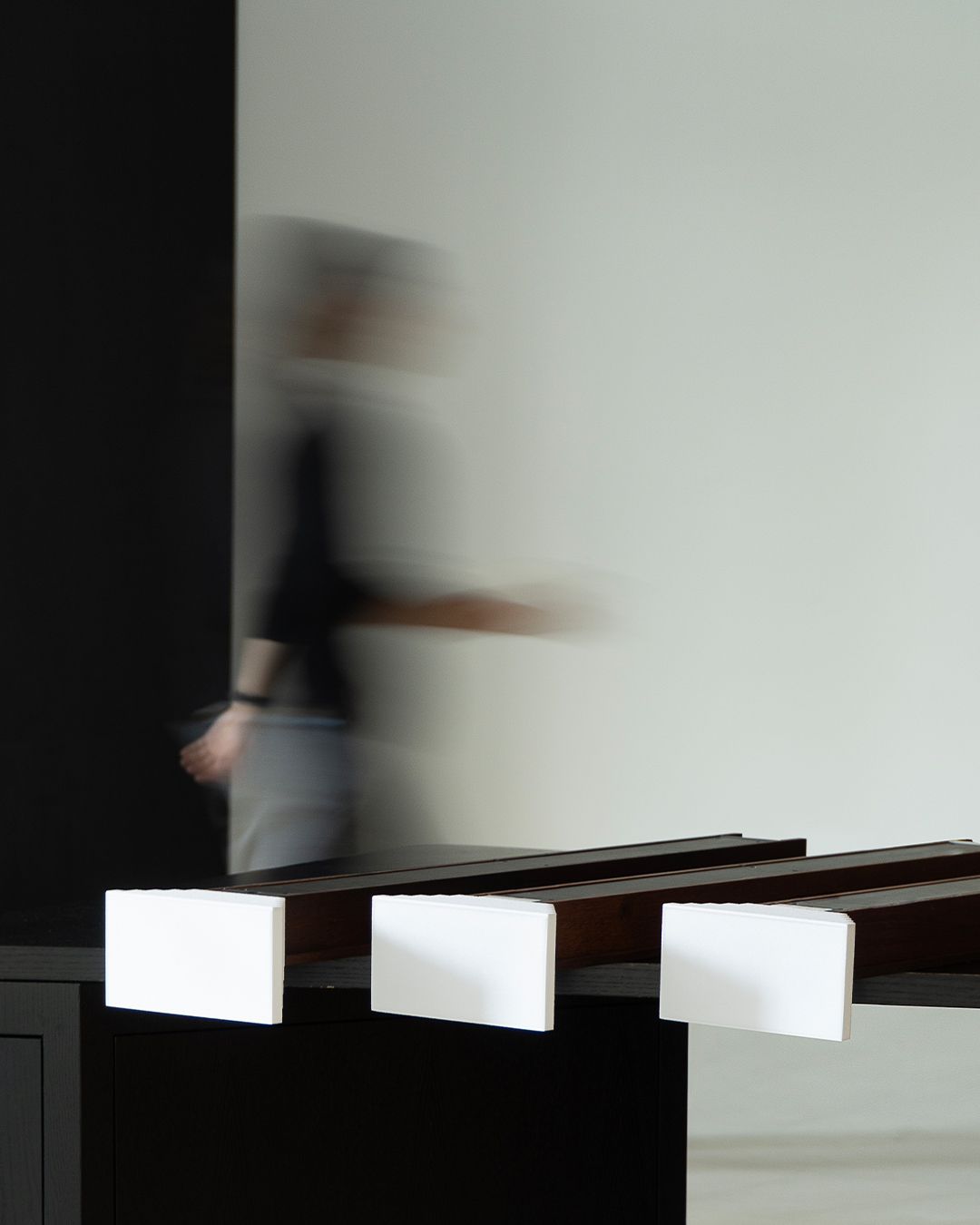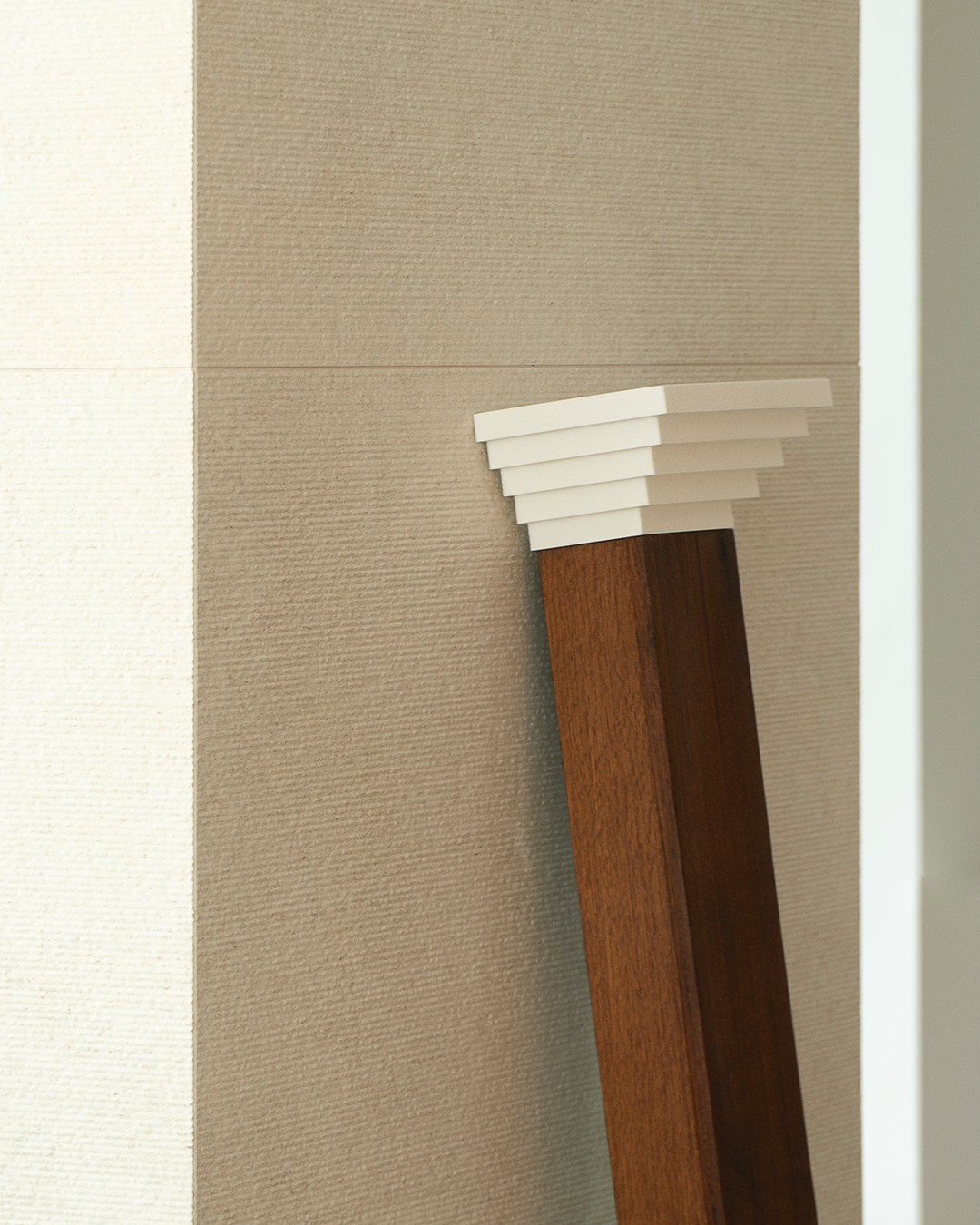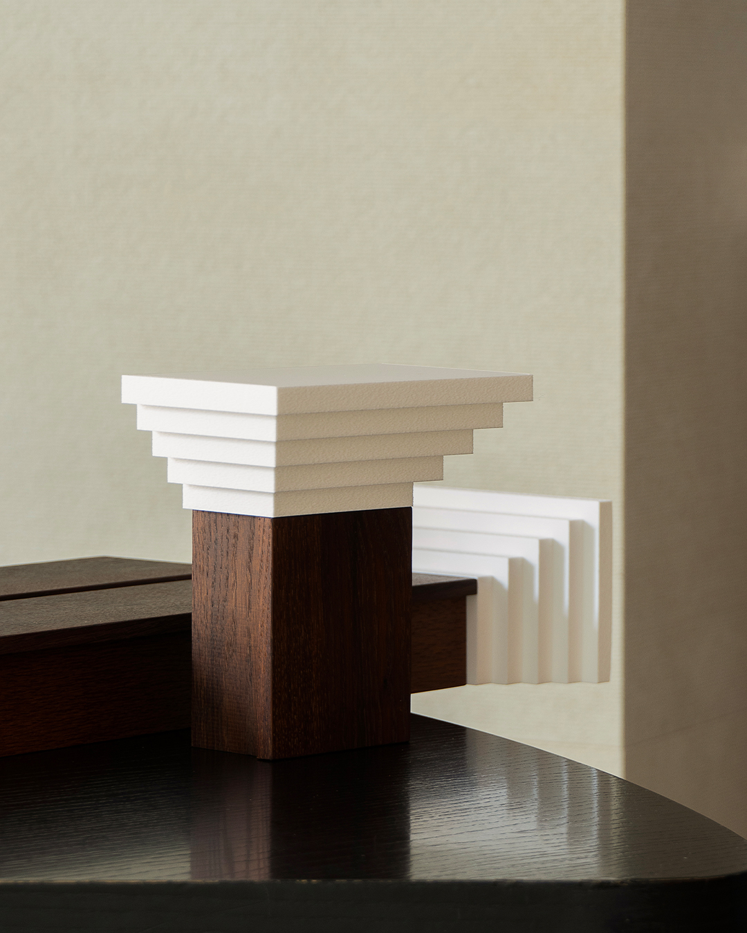 나무의 자연스러운 질감과 프린팅 레이어의 정제된 결이 어우러지며, 하나의 구조 안에서 서로 다른 시간과 감각이 공존합니다.